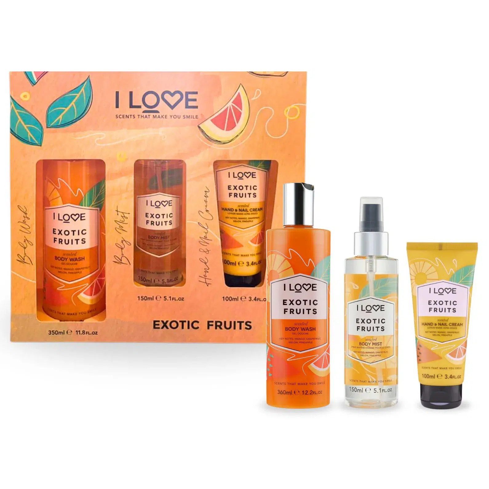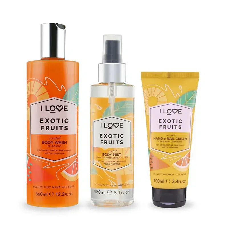 I LOVE EXOTIC FRUITS Estuche Body Wash 350ml+Body Mist 150ml+Hand Lotion 100ml (I LOVE) (Mujer)